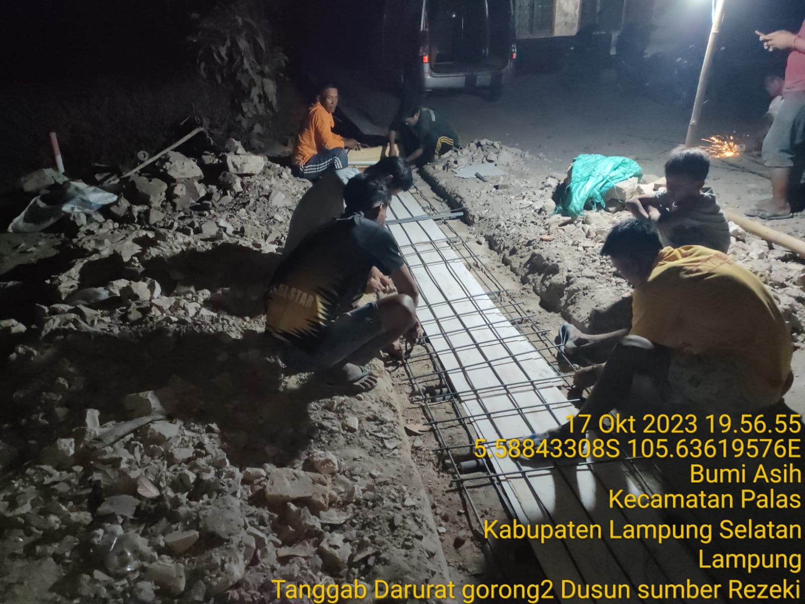 Dalam hitungan hari dari laporan warga nya tersebut Kepala Desa Bumi Asih Poniran menerjun kan warga nya beserta TPK Desa Bumi Asih langsung bergotong royong membangun gorong-gorong yang berada di Dusun Sumber Rezeki tersebut.