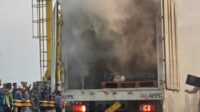 Diduga Kebakaran Kapal Ferry KMP Transip dari Truk Tronton Pengangkut Paket J&T